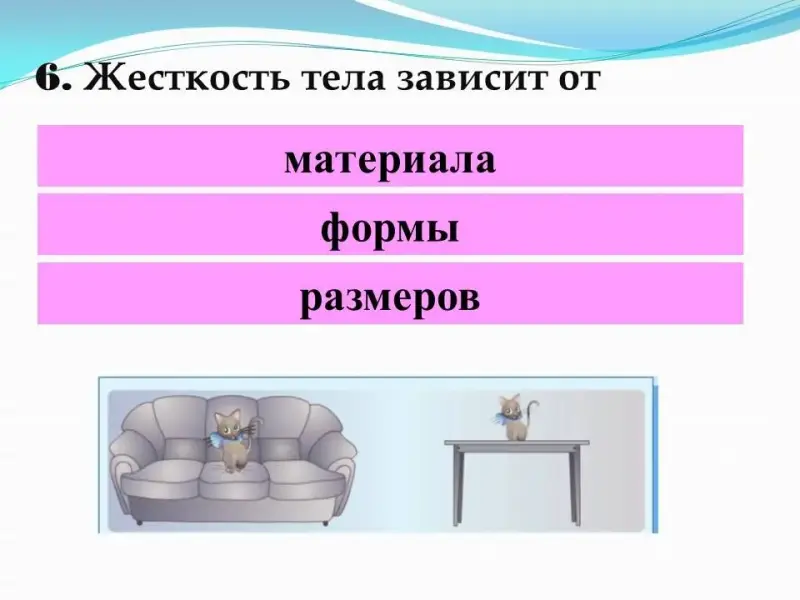 - Жесткость тела зависит от: