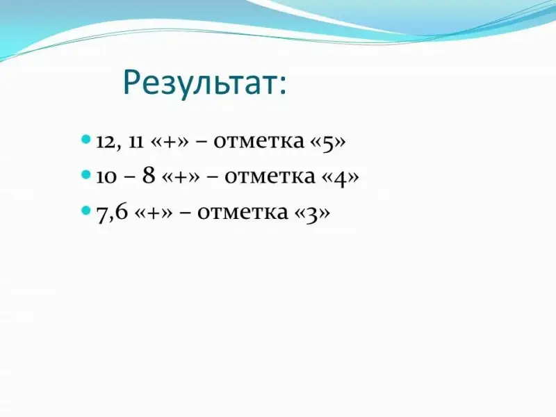 Проведите взаимопроверку и оценивание правильных ответов, внесите отметку в лист оценивания. Поднимите, пожалуйста, руки, кто выполнил работу на 5?4?