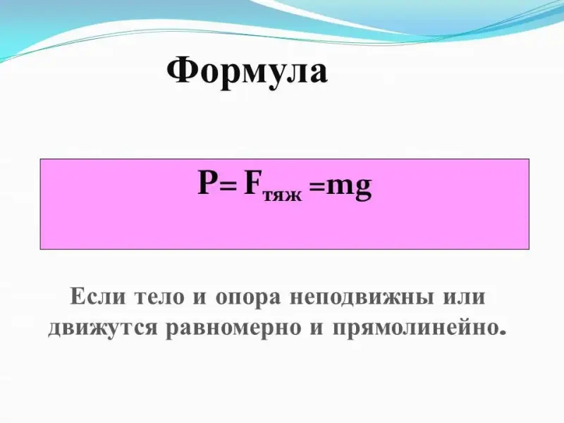 Формула для расчёта: Р = F тяж.=mg