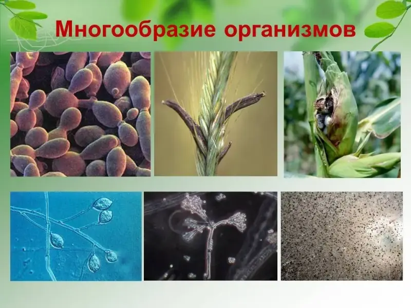 Многообразие этих организмов очень велико. Попробуйте узнать организмы на слайде, назовите их. Учащиеся пытаются назвать грибы, которые изображены на слайде. Казалось бы, что общего между организмами, которые изображены на слайде, тем не менее, всё это грибы, и в их строении есть общие черты. Давайте определим цель урока, задачи, план изучения темы.