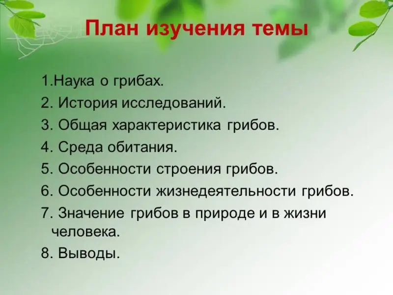 Особенности строения грибов