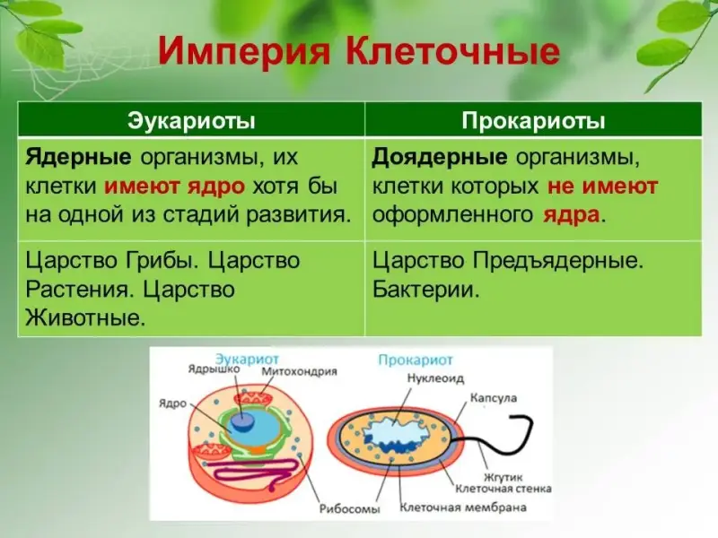 Учащиеся должны вспомнить понятия "прокариоты, эукариоты", характерные особенности представителей разных царств.