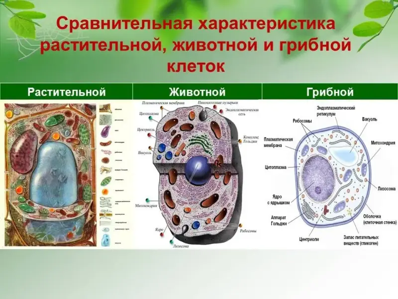 | Признаки | Растительная клетка | Животная клетка | Грибная клетка |