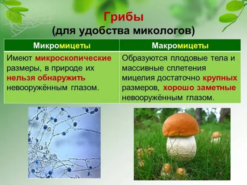 Условно грибы делят на микромицеты и макромицеты. Микромицеты настолько малы, что их можно рассмотреть только с помощью специальных приборов. К ним относятся дрожжи, плесневые грибы. Макромицеты имеют крупные плодовые тела. Именно они известны всем грибникам.