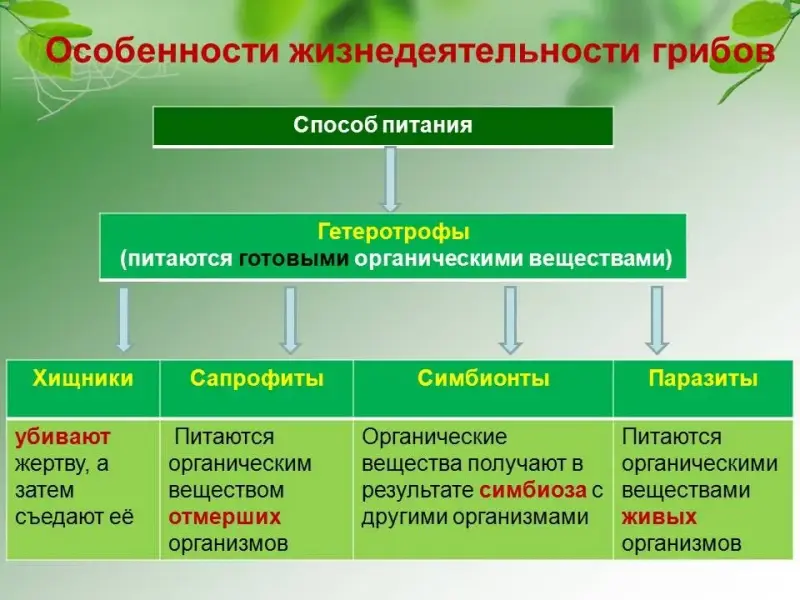 Особенности жизнедеятельности грибов. Особенности питания грибов.