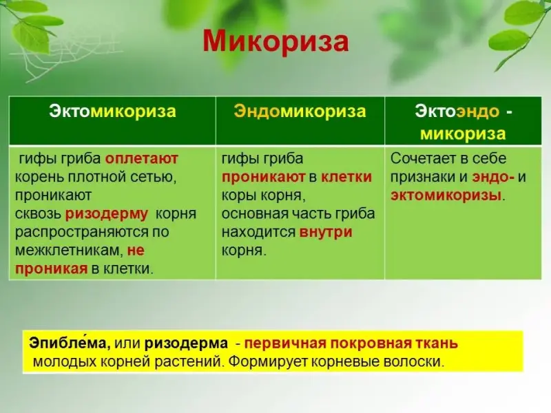 Что такое симбиоз? Какие симбиозы образуют грибы? Почему названия некоторых грибов связаны с определёнными растениями? Какую пользу друг другу приносят организмы, образующие симбиоз? Почему микоризные виды грибов не удаётся выращивать искусственно. Учащиеся отвечают на вопросы, приводят примеры. Грибы участвуют в создании двух важных симбиозов - лишайников и микоризы. Лишайник - симбиоз гриба и водоросли. Микориза (от греч. "микос" - гриб и "риза" - корень) - это взаимовыгодное сожительство гриба с корнями высших растений. От растения гриб получает готовые органические вещества, а взамен во много раз увеличивает поверхность корня, помогая всасывать воду и минеральные вещества. Без грибов растения хуже развиваются. Для некоторых растений микориза необходима. У орхидей не могут прорасти семена. Грибы, участвующие в микоризе, защищают растения от патогенных организмов, в частности от поражения другими вредными грибами. Поэтому микоризные виды грибов не удаётся выращивать искусственно.