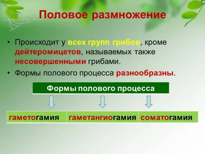 Происходит у всех групп грибов, кроме дейтеромицетов, называемых также несовершенными грибами. Формы полового процесса разнообразны.