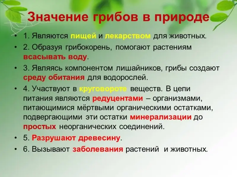 7. Значение грибов в природе и в жизни человека.