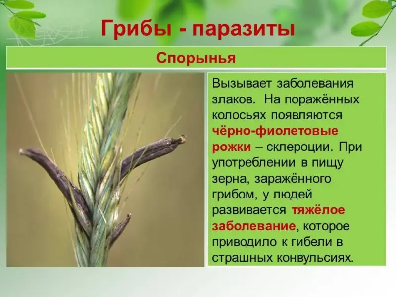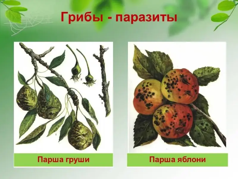 2. Грибы, поражающие культурные растения, снижают их урожаи (парша яблонь и груш и другие). 3. Вызывают порчу продуктов питания и предметов, используемых человеком. 4. Грибы вызывают заболевания у животных и людей (молочница, парша, стригущий лишай и др.). 5. Грибы могут вызвать смертельное отравление. |