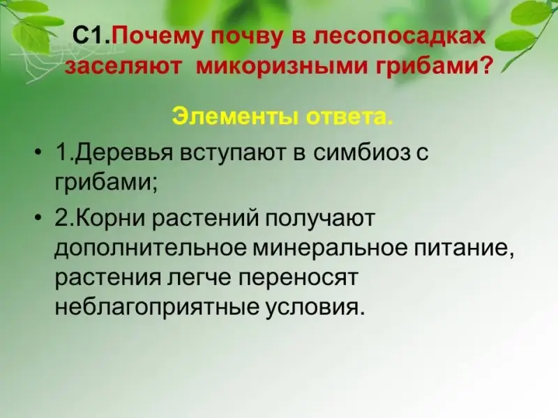 С1. Почему почву в лесопосадках заселяют микоризными грибами?