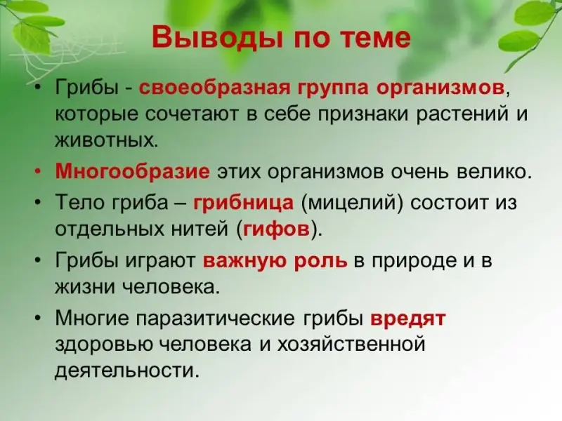 - грибы играют важную роль в природе и в жизни человека;
