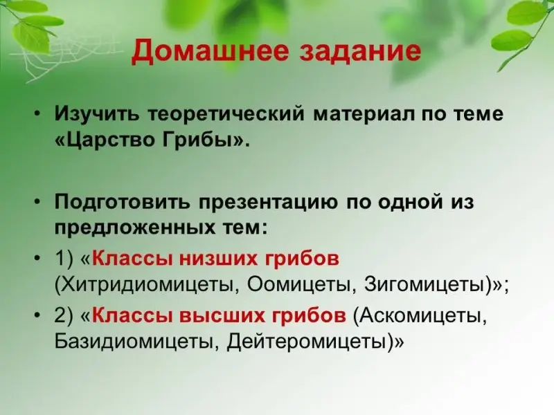 2) "Классы высших грибов (Аскомицеты, Базидиомицеты, Дейтеромицеты)".