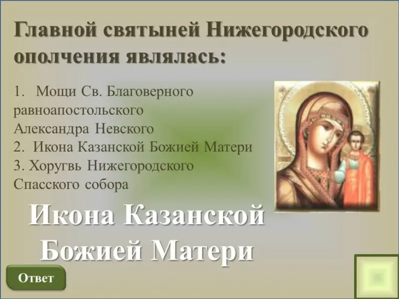 Главной святыней Нижегородского ополчения являлась: