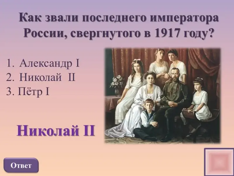 Как звали последнего императора России, свергнутого в 1917 году?