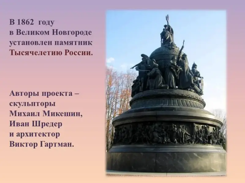 В 1862 году в Великом Новгороде установлен памятник Тысячелетию России.
