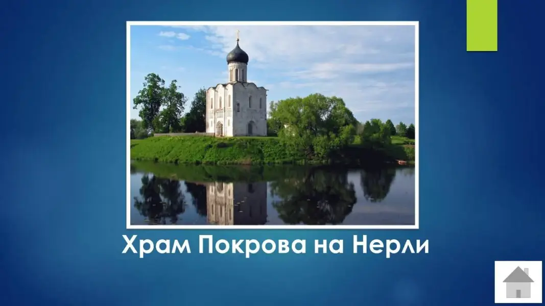 Вопрос 20: Эту церковь Андрей Боголюбский построил неподалеку от своих палат после кончины любимого сына. Её называют "Поэмой из камня". Ответ: Храм Покрова на Нерли