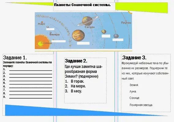 Ученик на доске выкладывает планеты С.С., а остальные за партами.