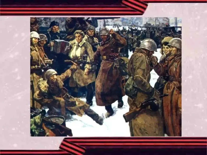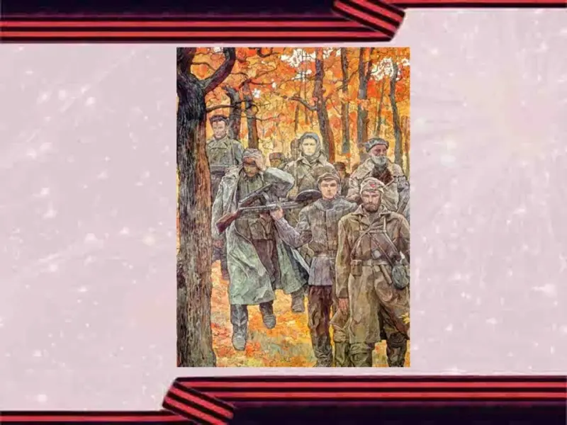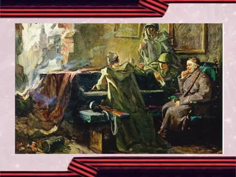 - Подвиг нашего великого народа увековечен во многих произведениях литературы, кино, изобразительного искусства, музыки. С каждым годом таких произведений становится больше, но самыми ценными для нас остаются подлинные кадры военной фото и документальной съемки.