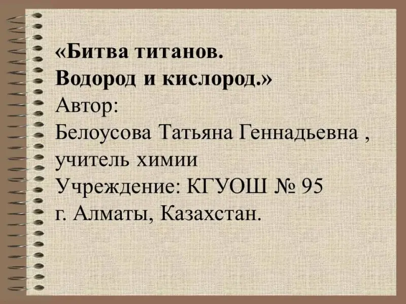 Интегрированный урок (химии + английский язык) "Битва титанов: водород и кислород"