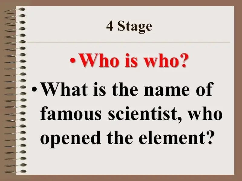 Who is who? What is the name of famous scientist, who opened the element? (1 mark/ 2 marks).
