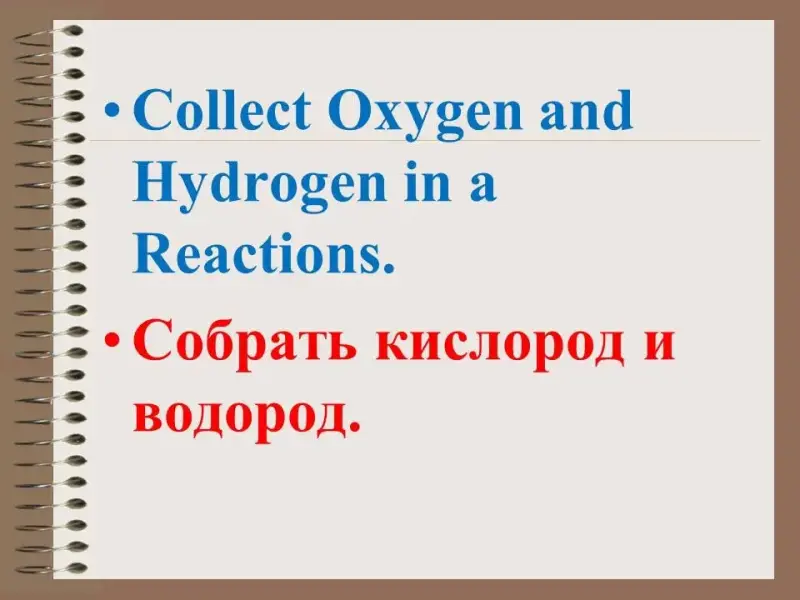 Collect Oxygen and Hydrogen in a Reactions. Собрать кислород и водород.