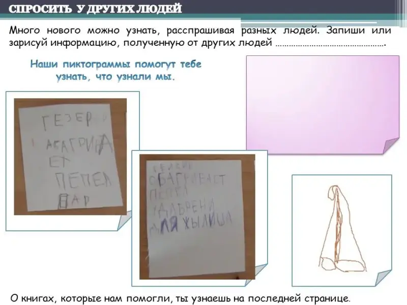 Это требует специального рассмотрения задачи представления результатов детских исследований. С одной стороны, мы должны обязательно дать каждому ребенку возможность изложить собственные результаты, с другой - обучать его элементарным навыкам презентации собственных открытий.