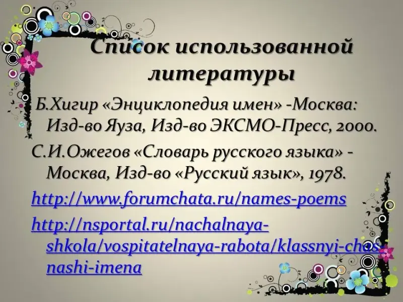 Список литературы: