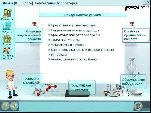 - Научить учащихся работать в виртуальной лаборатории с проведением в реализованной на экране монитора лаборатории со всем оборудованием и химической посудой, а также химическими реагентами.