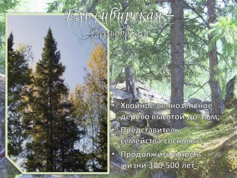 10 слайд - Первое растение, с которым мы сегодня познакомимся - это лиственница сибирская (Larix sibirica) - это одна из основных лесообразующих древесных пород нашего района. Лиственница - хвойное однодомное ветроопыляемое дерево из семейства сосновые высотой до 45 м. Лиственница умеренно требовательна к влажности и мало требовательна к плодородию почв. Размножается только семенами. Продолжительность жизни до 300 - 400 лет, иногда доживает до 900 лет.