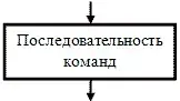 Прямоугольник, применяется для описания линейной последовательности команд, имеет один вход вверх и один выход внизу. |
