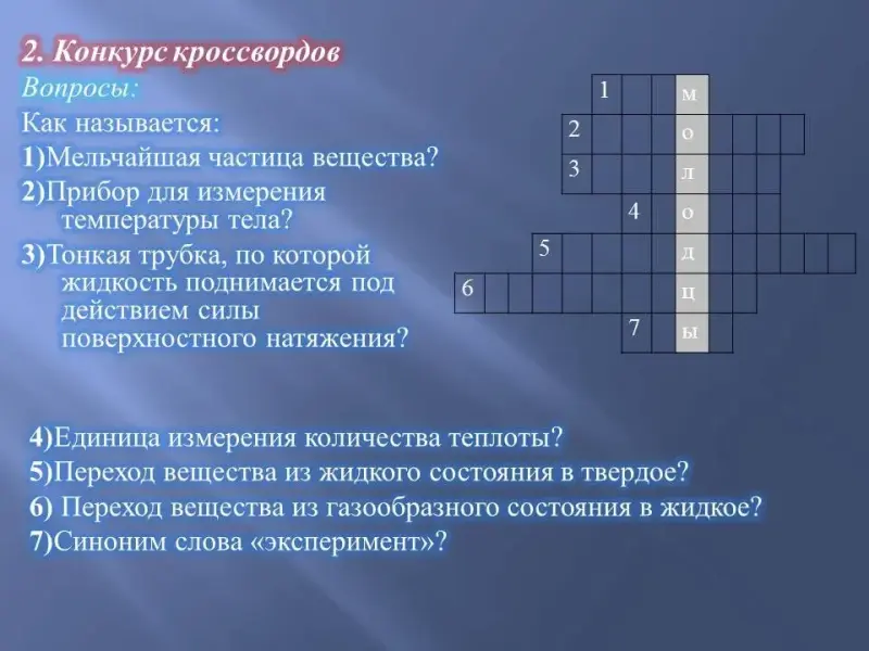 Командам выдают лист с сеткой кроссворда и вопросами .