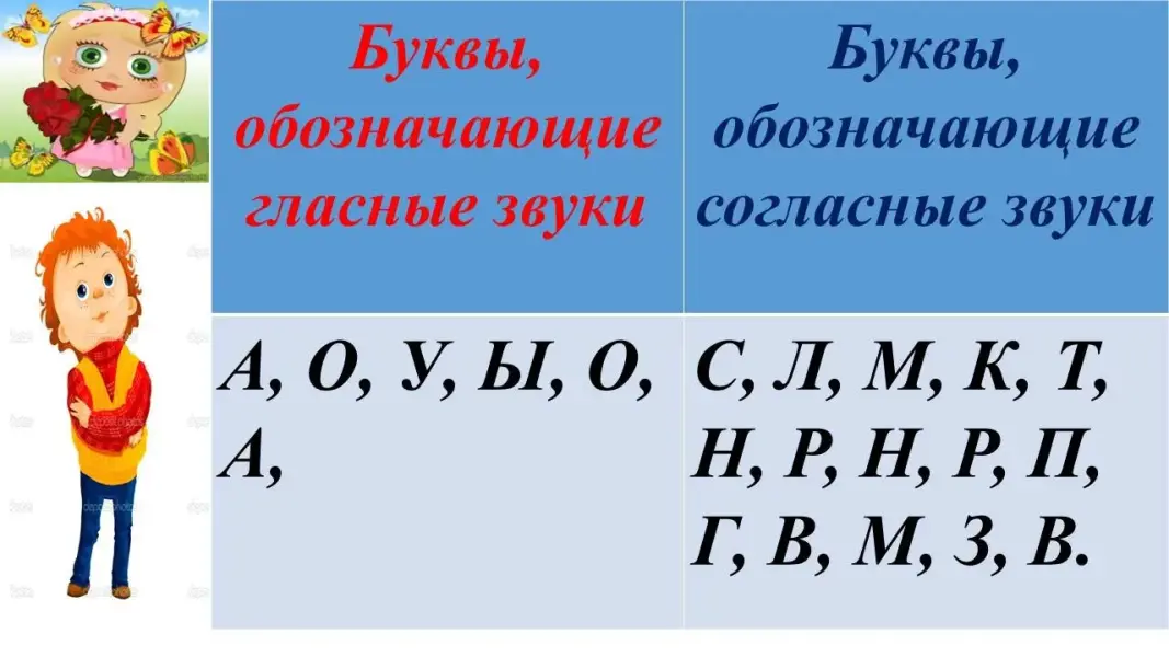 Пояснение: на буквы, обозначающие гласные звуки и согласные звуки.