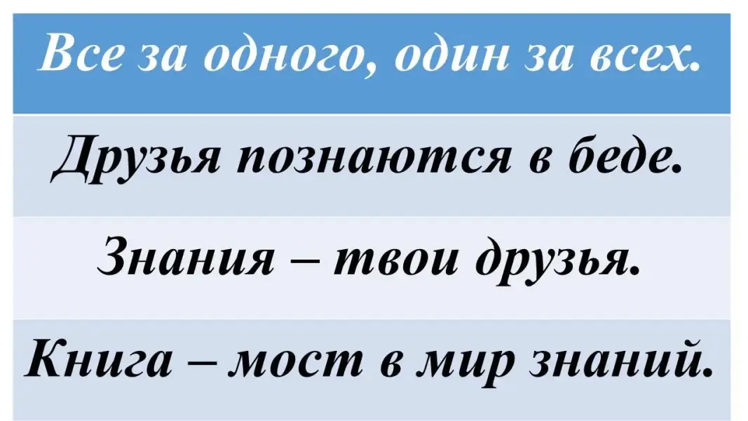 - Прочтите пословицу. Что значат эти слова? Какой вывод сделаем? Будем ли мы пользоваться знанием этой пословицы в жизни?