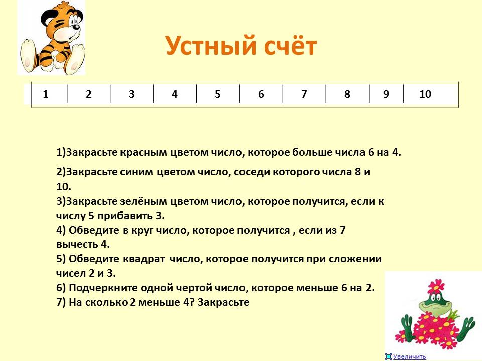 «Закрепление. Состав числа в пределах 10». 1-й класс