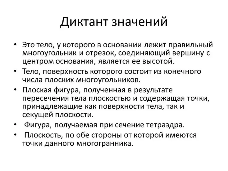 Диктант значений (приём экстраактивного обучения). Учитель диктует определения, а учащиеся должны записать по ним понятия. (Слайд 2).