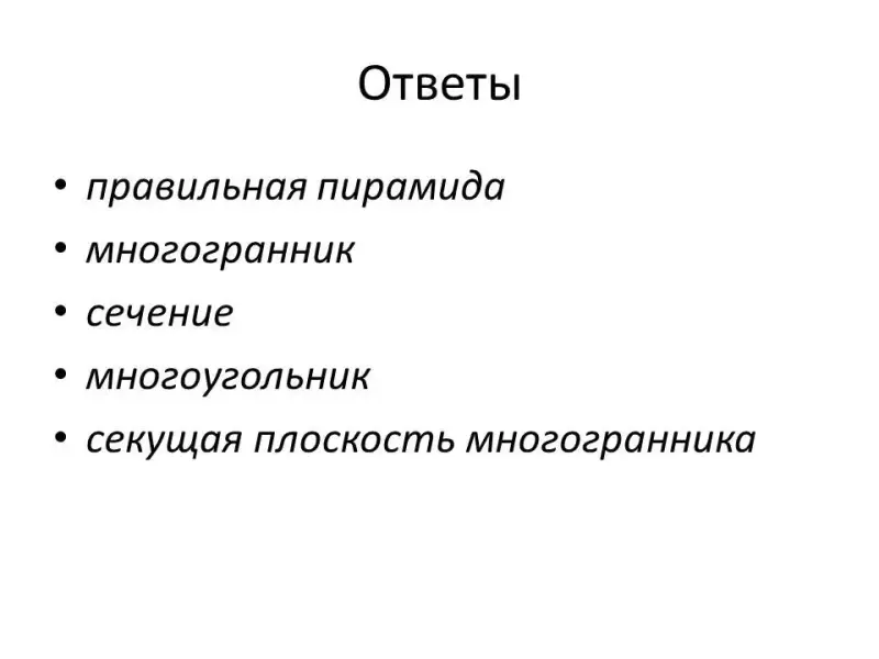 - Тело, у которого в основании лежит правильный многоугольник и отрезок, соединяющий вершину с центром основания, является ее высотой (правильная пирамида).