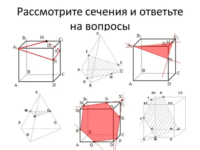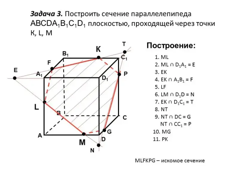 - Задача 4. Построить сечение плоскостью, проходящей через точки Р, К, М, М