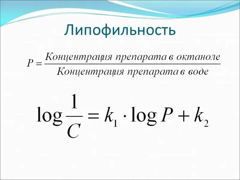 Затем учитель вводит понятие липофильности, приводит формулу для ее вычисления (слайд 5):