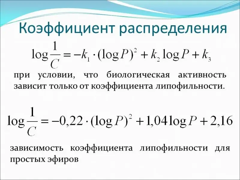Учащимся поясняется, что липофильность является важным фактором, так как обеспечивает попадание биологически активных веществ в клетки, приводится уравнение для описания линейной зависимости биологической активности от коэффициента липофильности (Log P):