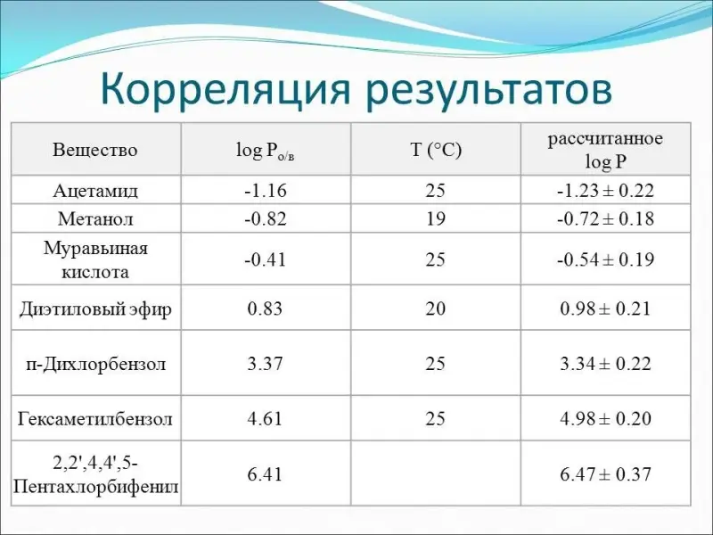 Данные о коэффициентах липофильности, полученные с помощью программы Chemsketch хорошо коррелируются с опытными данными (слайд 12).