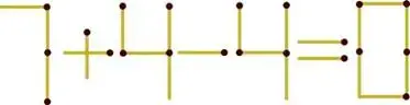 Ответ. Необходимо во второй цифре 4 горизонтальную спичку расположить вертикально, получив число 11 (7 + 4 - 11 = 0)