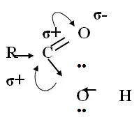 1. По сравнению с альдегидами и кетонами углеродный атом - С = О несет меньший положительный заряд. Это происходит благодаря положительному мезомерному эффекту атома кислорода гидроксильного фрагмента, имеющего неподеленную электронную пару. Таким образом, карбонильная группа становится не способна к реакциям присоединения, характерным для альдегидов и кетонов.