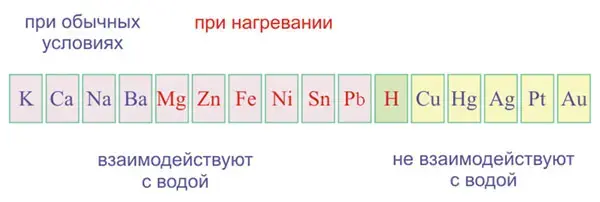 Учитель: Рассмотрим взаимодействие Ме со сложными веществами. По степени активности металлы располагают в ряд напряжений, в котором металлы расположены в порядке убывания их восстановительных свойств и усиления окислительных свойств их ионов. Он характеризует активность металлов в ОВР, протекающих в водных растворах.