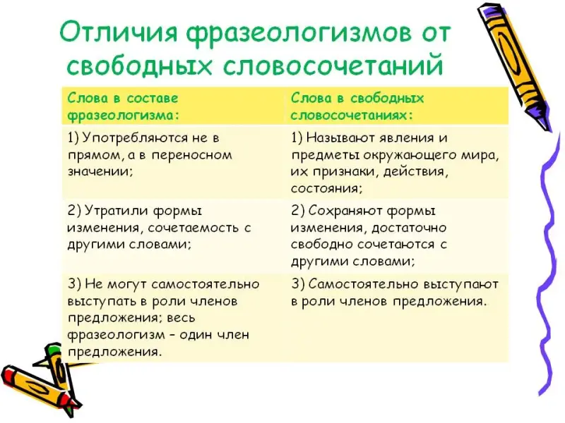 Отличия фразеологизмов от свободных словосочетаний (слайд 3)