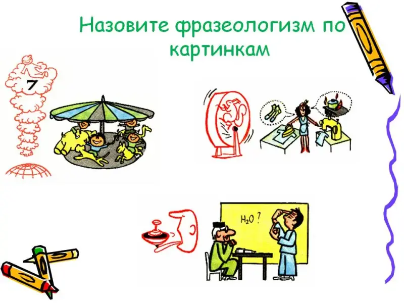 Назовите фразеологизм по картинкам (слайды 6-10, Приложение 1)