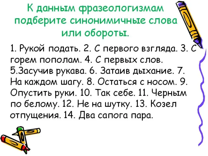 Задание: К данным фразеологизмам подберите синонимичные слова или обороты (слайд 15)