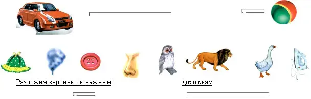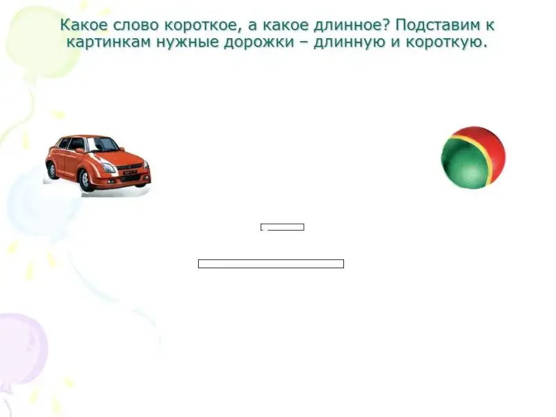 - Какое слово короткое, а какое длинное? Подставим к картинкам нужные дорожки - длинную и короткую.