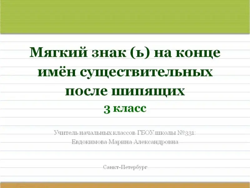 «Мягкий знак на конце имен существительных после шипящих». 3-й класс