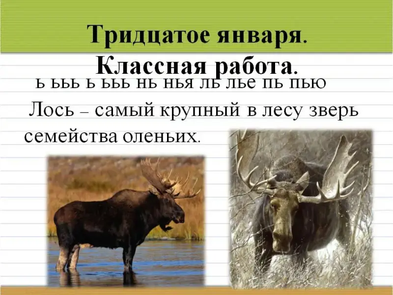 - Что вы знаете о лосе? Расскажите. (Большой лесной зверь. Ест траву и ветки…)
