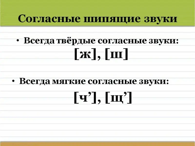 - Что вы можете сказать о них? (Согласные, шипящие, [ж], [ш] - всегда твердые; [ч'], [щ'] - всегда мягкие.)